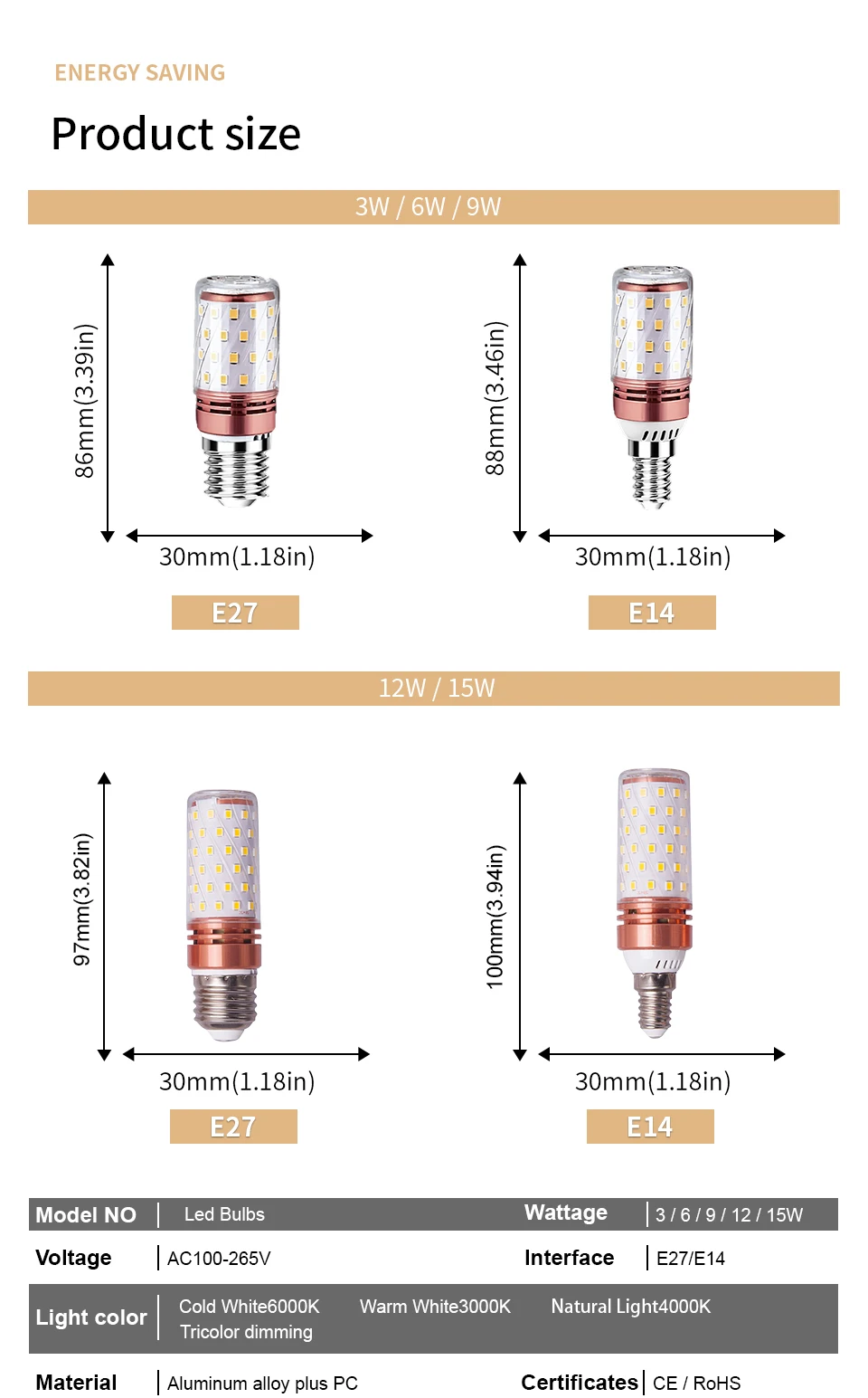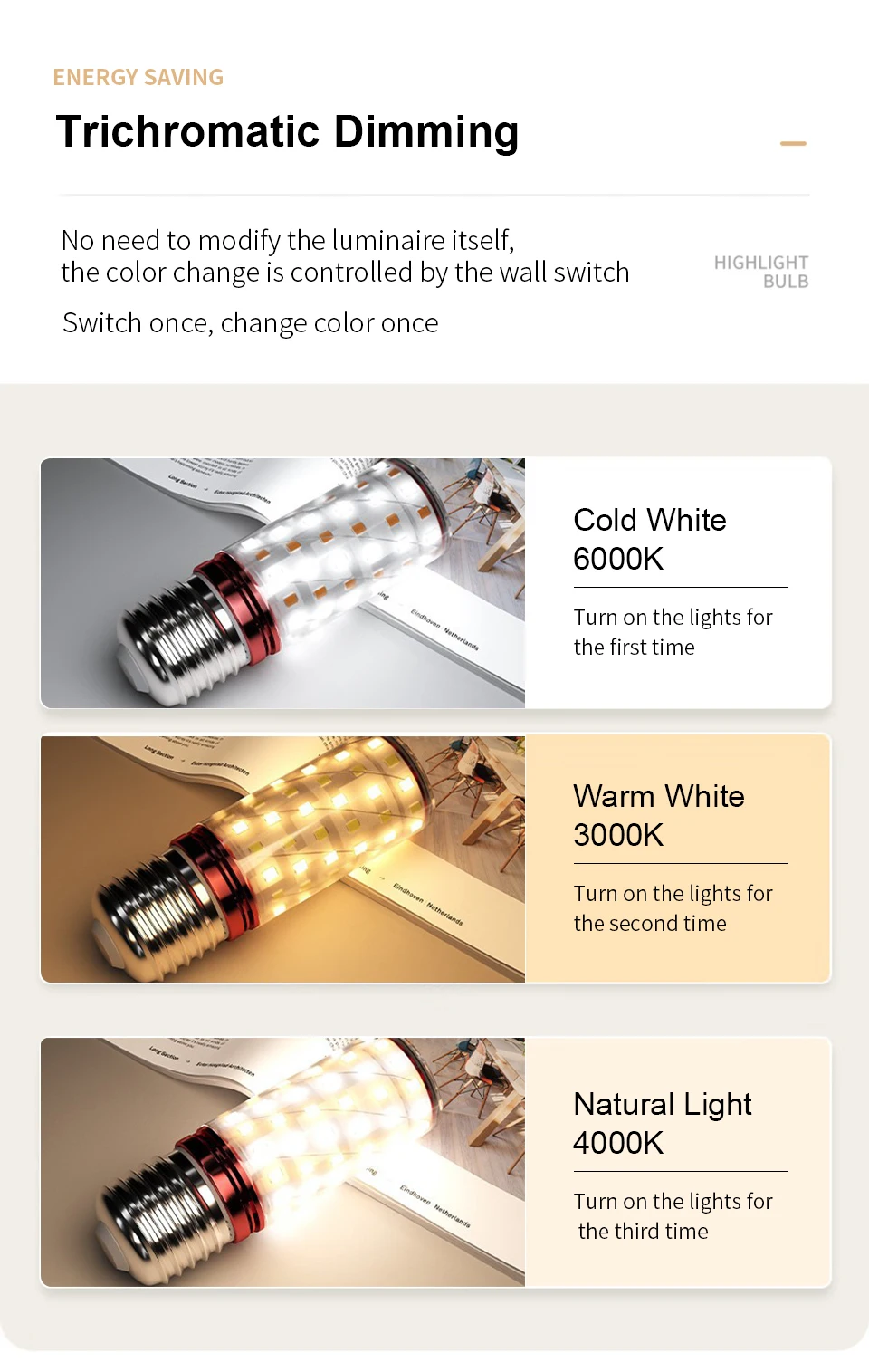 * Light color: warm white (3000K)/cold white (6000K)/Natural Light(4000K)/Tricolor dimming